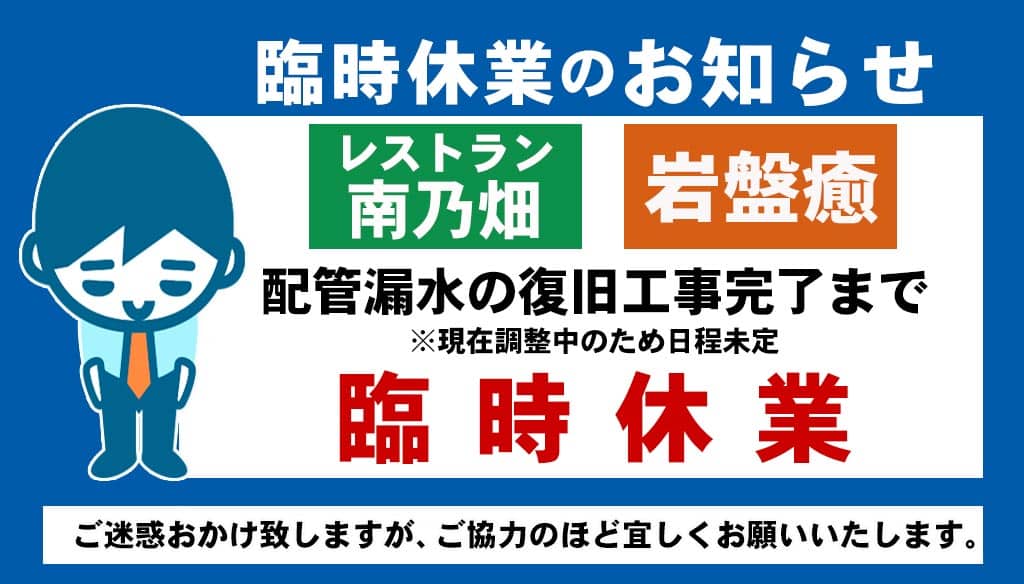 南乃畑・岩盤癒 臨時休業のお知らせ