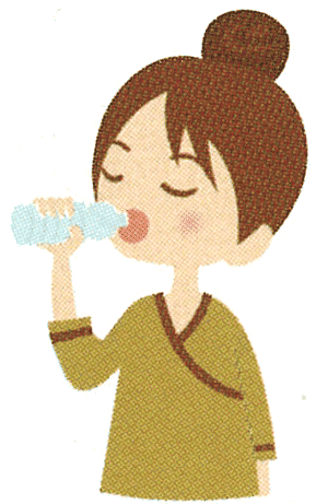 いったん体を休めます。水分を補給することで毛細血管やリンパ管の流れを改善し血行がよくなります。