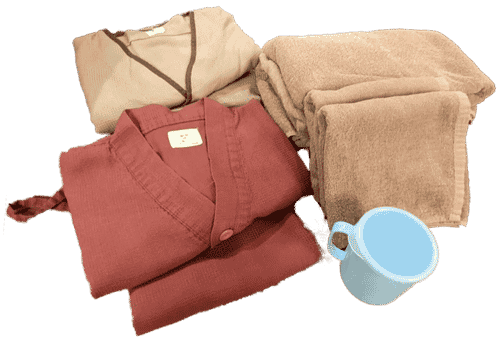 入浴料金にタオル・ガウンセットとコップをご用意しています。追加が必要な方に下記料金でリネンの貸出を致しております。